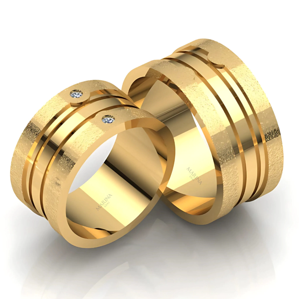 As Alianças Cairo em Ouro 18K são sinônimo de força e imponência. O aro reto de 10mm une a grandiosidade do ouro ao acabamento fosco elegante, em contraste com frisos duplos polidos, que destacam ainda mais a sofisticação do modelo.