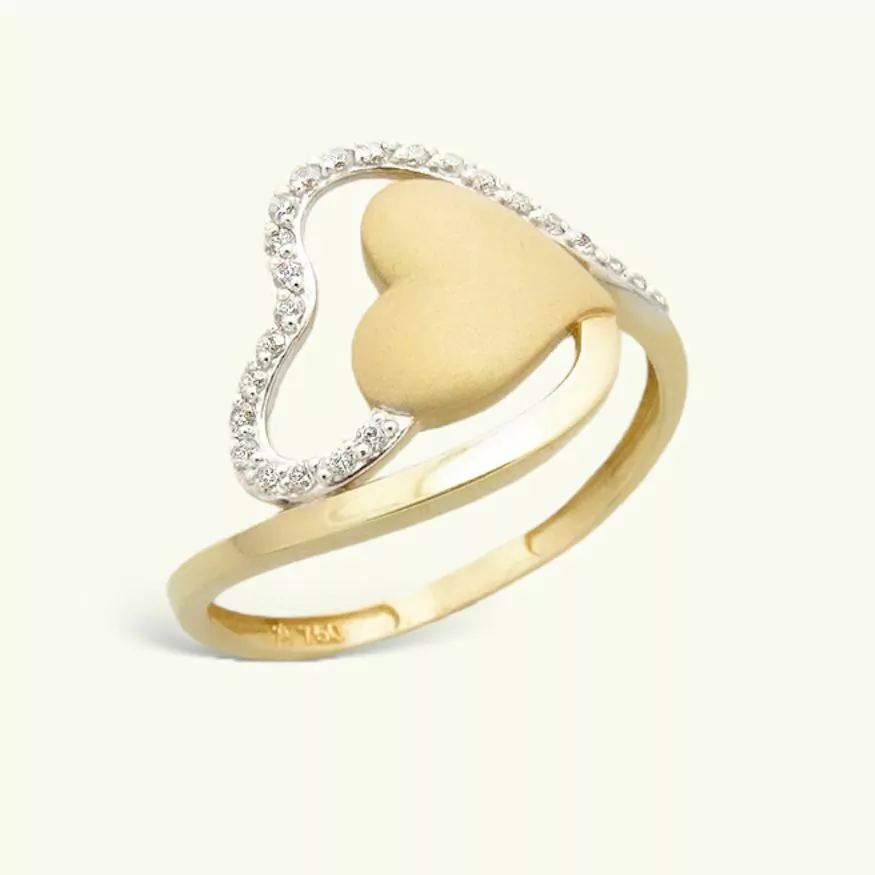 Um anel em ouro 18k com um coração fosco e brilhantes de 1 mm é uma peça de joalheria elegante e sutil. O design de coração fosco oferece um contraste interessante com o ouro polido, criando uma aparência única e moderna. O acabamento fosco suaviza o brilho do ouro, dando ao anel um toque mais discreto e sofisticado.