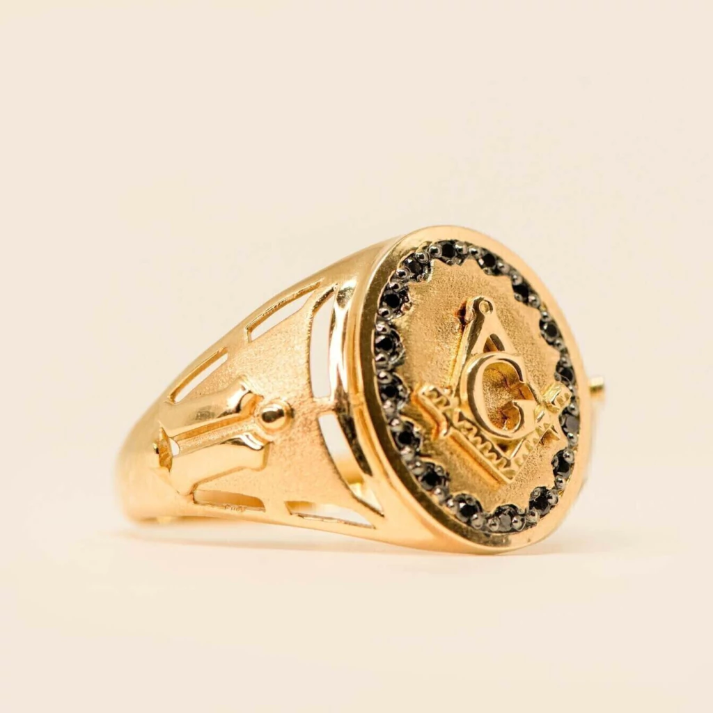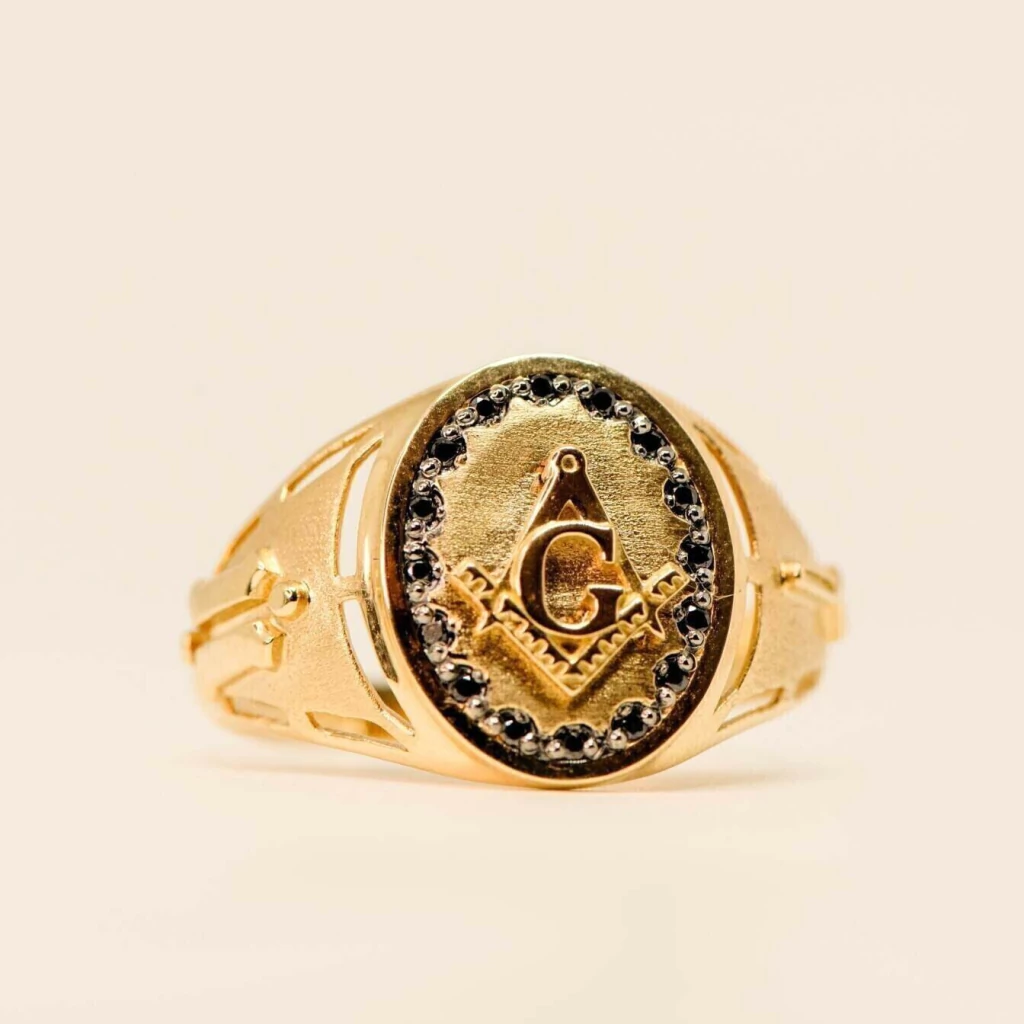 Um anel maçônico em ouro 18k com pedras de brilhantes é uma joia especial e significativa usada por membros da Maçonaria. A Maçonaria é uma sociedade fraternal com tradições, rituais e símbolos próprios, e o anel maçônico é um dos principais emblemas que identificam a afiliação à ordem.