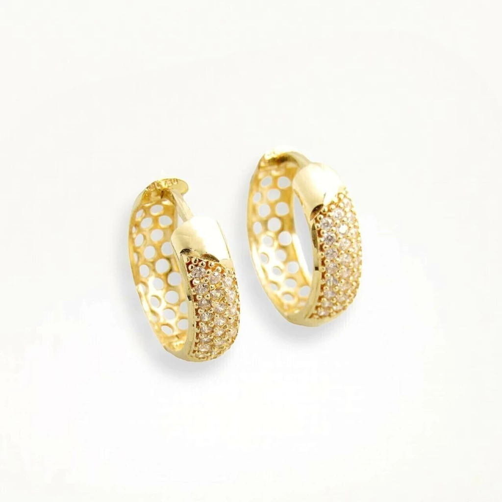 O ouro 18K garante resistência, qualidade e brilho eterno. As zircônias, lapidadas para refletir intensamente a luz, transformam a argola em uma peça refinada e marcante.