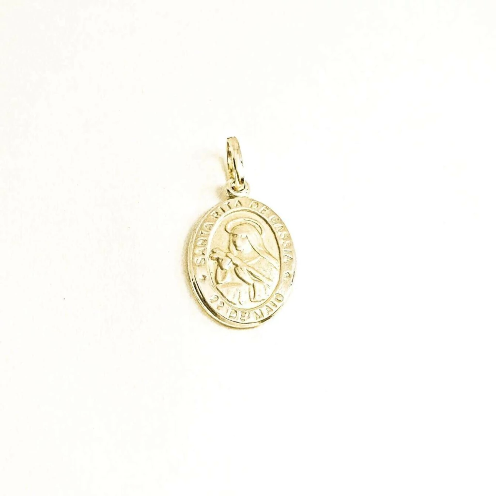 A Medalha de Santa Rita de Cássia em Ouro 18k é uma peça de joalheria que simboliza a devoção à Santa Rita de Cássia, uma santa conhecida como a santa das causas impossíveis e dos casos desesperados.