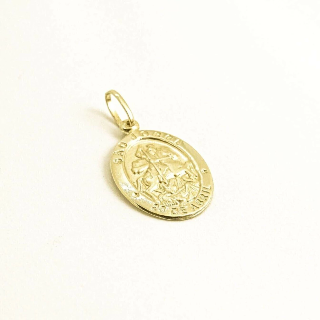 A Medalha de São Jorge Dupla Face com 18mm em Ouro 18k é uma joia impressionante e cheia de significado espiritual. Com seu design marcante e qualidade excepcional, esta medalha é uma escolha significativa para quem busca a intercessão e a proteção do santo guerreiro em suas vidas.